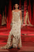Lace and gold checks asymmetrical top with 3d flower back and lace asymmetrical skirt